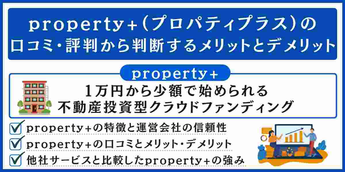 本記事では、property+の特徴や運営会社の信頼性、メリット・デメリット、実際の口コミ、登録方法や他社比較まで、初心者にもわかりやすく徹底解説します。