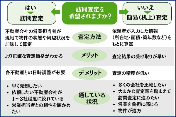 また、SUUMOは「訪問査定を希望するか?」の設問があるため、希望しなければ現地調査なしの「簡易(机上)査定」で査定価格が算出されます。